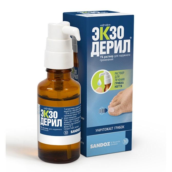 Экзодерил эффективен при лечении микозов, поражающих области кожи с гиперкератозом, а также в зонах роста волос.