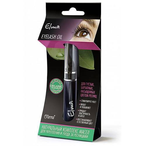 Масло для укрепления бровей и ресниц Elma содержит в составе только натуральные масла и экстракты. Легко наносится благодаря удобной щеточке и всего на 15 минут в день.