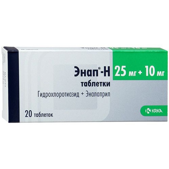 Активные вещества: Эналаприла малеат 10 мг, Гидрохлоротиазид 25 мг.