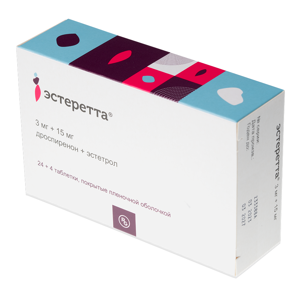 Препарат Эстеретта® представляет собой КГК, в состав которого входит прогестаген дроспиренон и эстроген эстетрол.