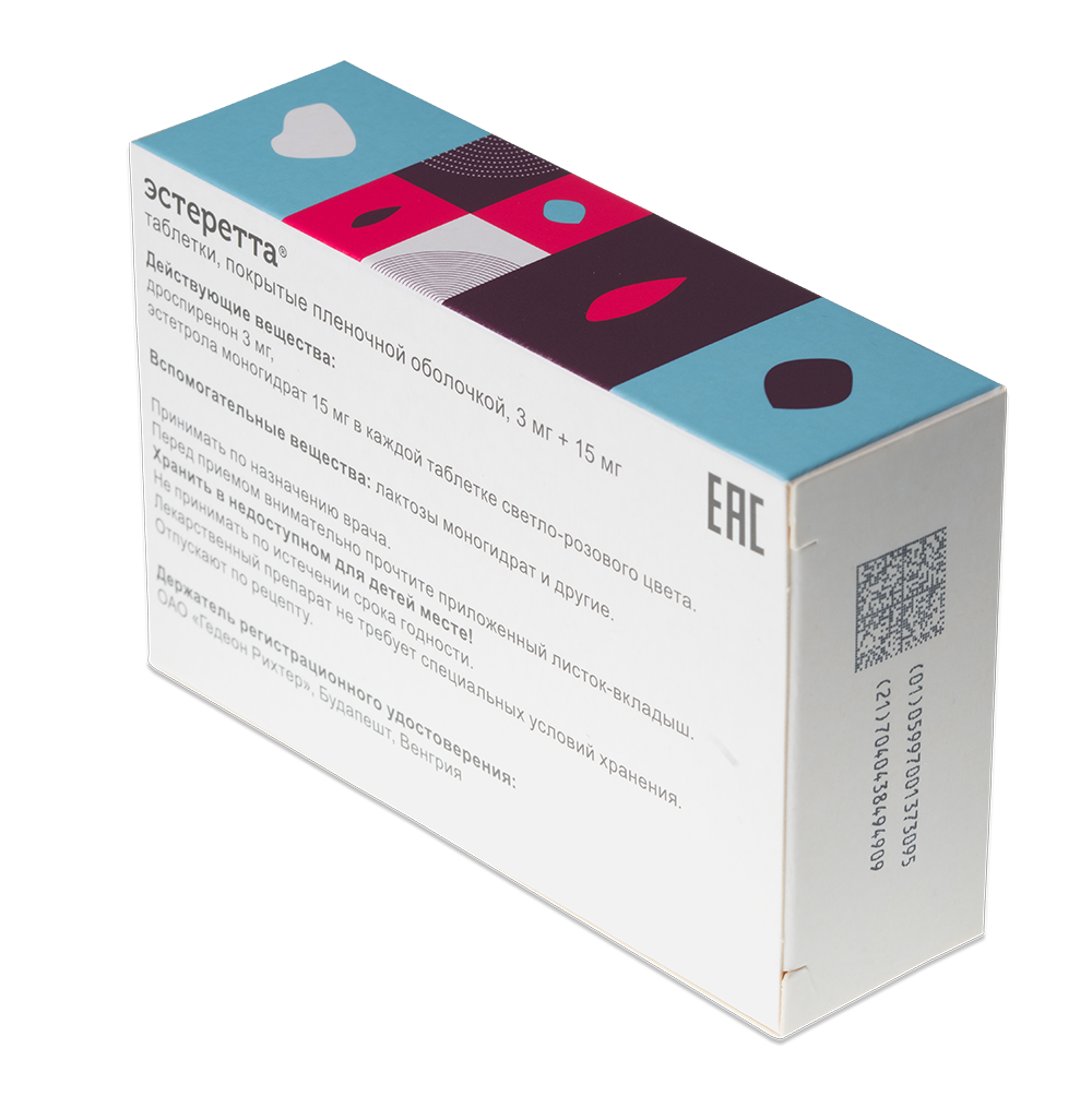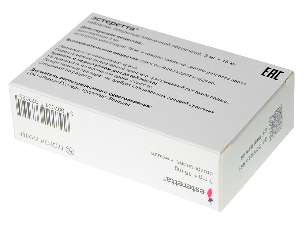 Эстеретта®, 3 мг + 15 мг, таблетки, покрытые плёночной оболочкой