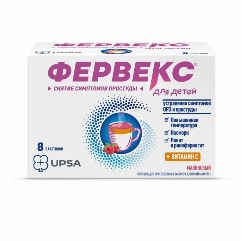 Фервекс® для детей — комбинированный препарат, который содержит парацетамол, фенирамина малеат и аскорбиновую кислоту.