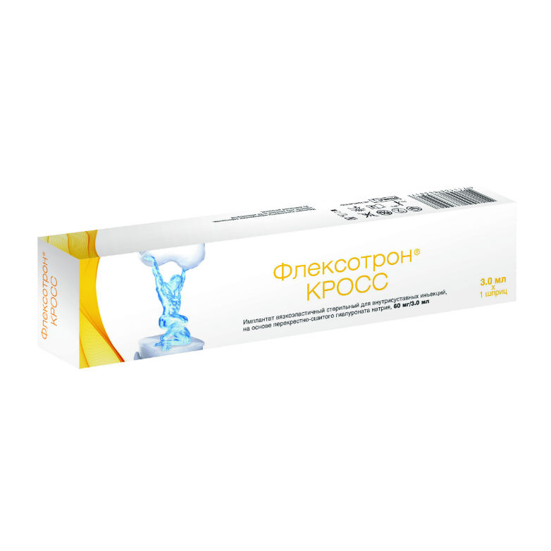 Имплантат вязкоэластичный стерильный для внутрисуставных инъекций Флексотрон® КРОСС (Flexotron® Cross), на основе перекрестно-сшитого гиалуроната натрия, 60 мг/3,0 мл.