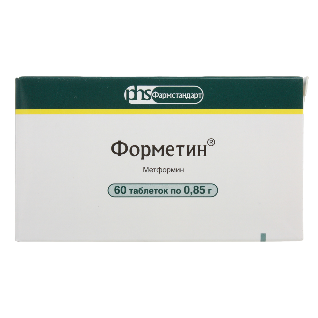 Активное вещество: метформина гидрохлорид — 0,500 г 0,850 г 1.000 г.