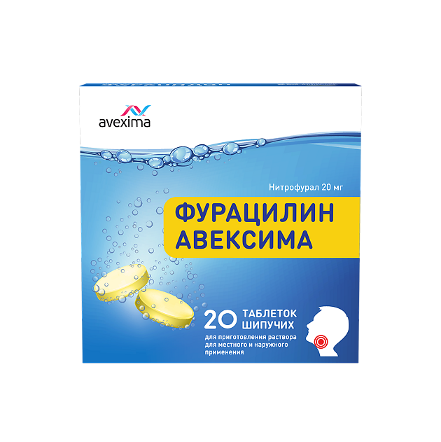 Фурацилин Авексима таблетки шипучие для приготовления раствора для местного и наружного применения 20мг №20