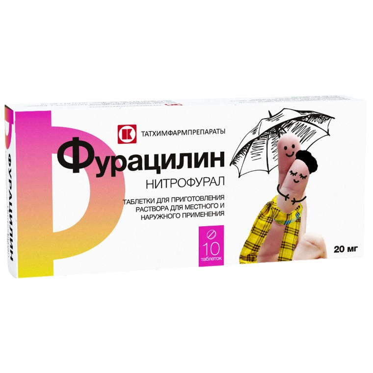 Фурацилин таблетки для приготовления раствора для местного и наружного применения 20мг №10