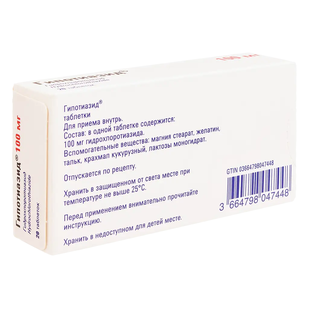 У больных, страдающих непереносимостью лактозы, возможно появление желудочно- кишечных жалоб, в связи с наличием лактозы в составе таблеток: таблетки Гипотиазид® 25 мг содержат 63 мг лактозы, Гипотиазид® 100 мг — 39 мг лактозы.