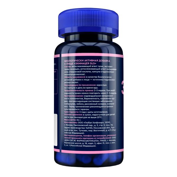 Антислеживающий агент тальк, экстракт травы эхинацеи, антислеживающий агент кальциевая соль стеариновой кислоты, капсула (носитель гидроксипропилметил-целлюлоза или желатин).