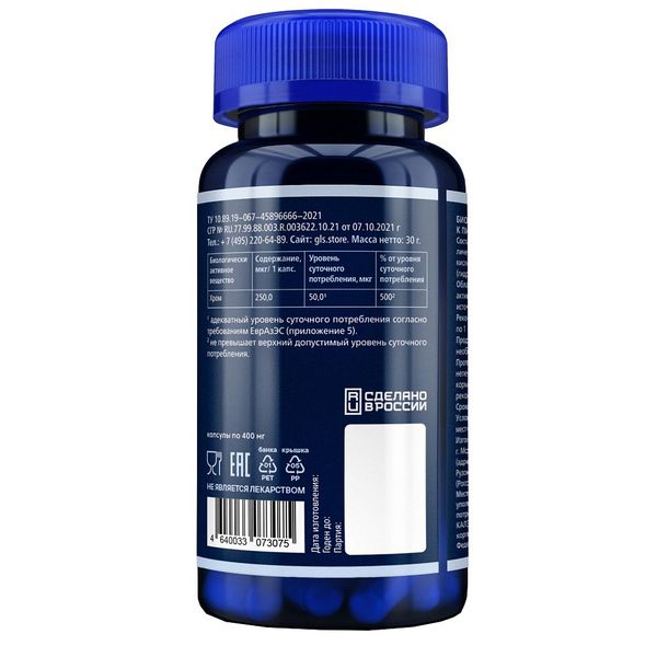 GLS Хрома пиколинат 250 капсулы 400мг №60