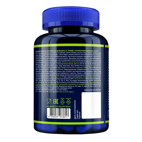 GLS Мультивитамины 12+9 капсулы 420мг №120