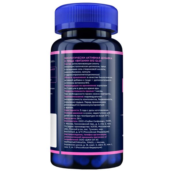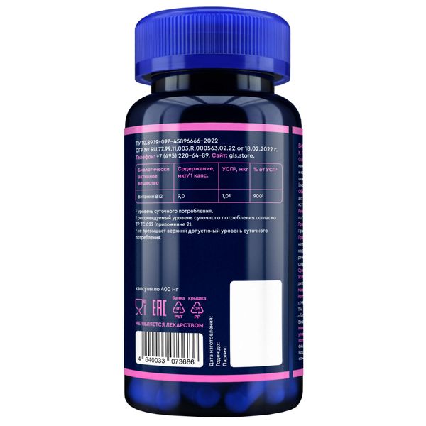 Микрокристаллическая целлюлоза (Е460i), тальк (E553iii), кальциевая соль стеариновой кислоты (E470), цианокобаламин, капсула (гидроксипропилметилцеллюлоза (Е464) или желатин).