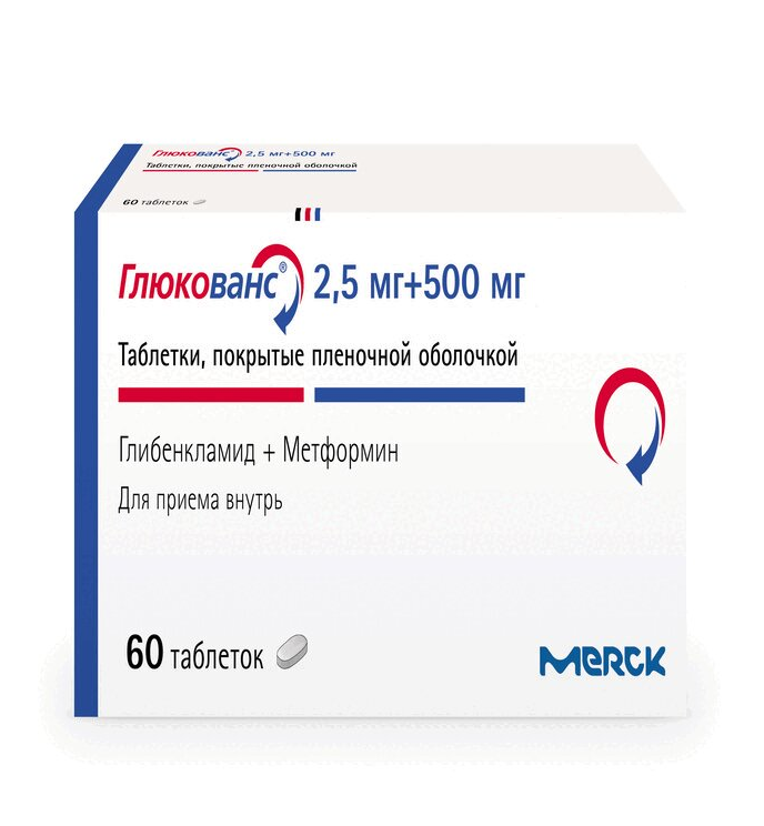 Глюкованс® представляет собой фиксированную комбинацию двух пероральных гипогликемических средств различных фармакологических групп: метформина и глибенкламида.