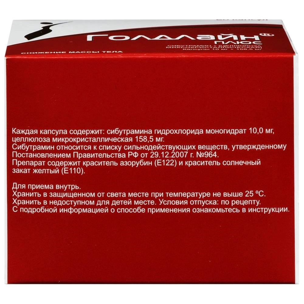 Голдлайн® ПЛЮС следует применять только в тех случаях, когда все немедикаментозные мероприятия по снижению массы тела малоэффективны — если снижение массы тела в течение 3-х месяцев составило менее 5 кг.