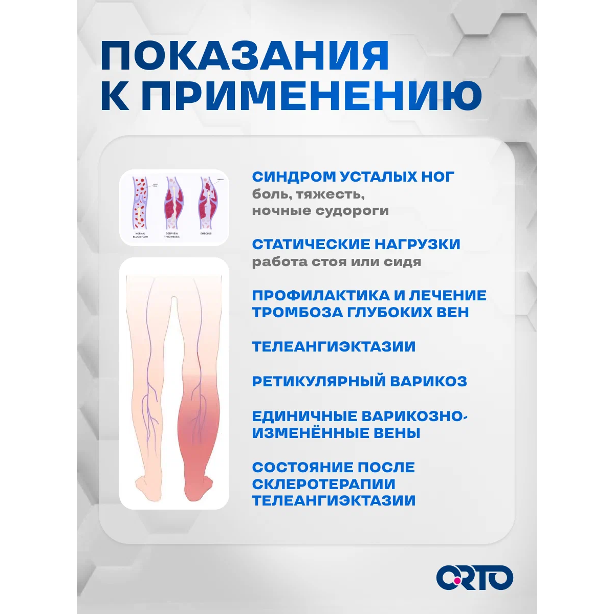 Гольфы компрессионные мужские 316 ORTO 1 класс компрессии (18-22 мм рт. ст.) производятся из современного эластичного полотна, нити которого имеют двойную оплетку (двойное армирование) для улучшения износостойкости и создают умеренную компрессию по всей длине, снижаясь от щиколотки наверх. В составе материала высокое содержание натурального хлопка, что придает трикотажу комфорт при использовании. Благодаря особой уплотненной вязке, пяточная и носочная части более укреплены, а плоские швы не оставляют следов на теле. В верхней части, для фиксации на ноге вывязана широкая мягкая резинка, которая не создает перетяжек.