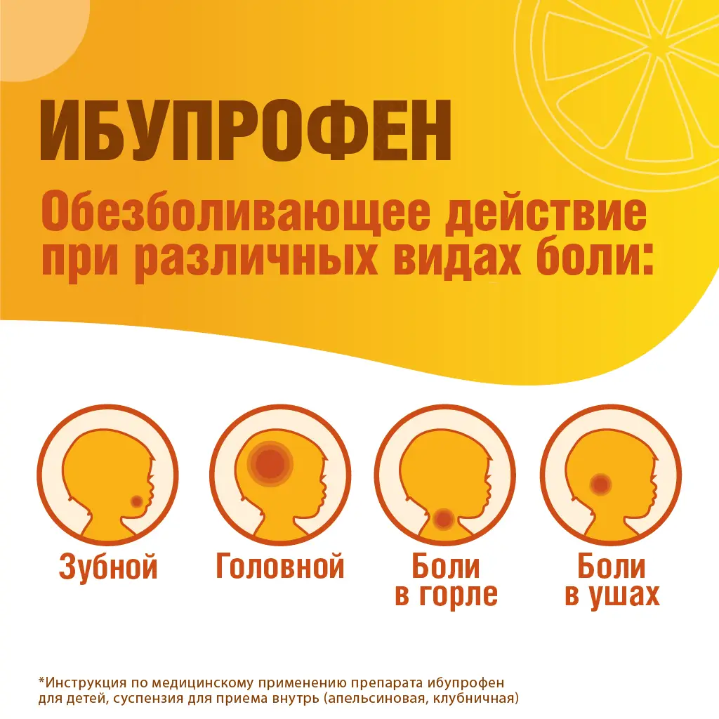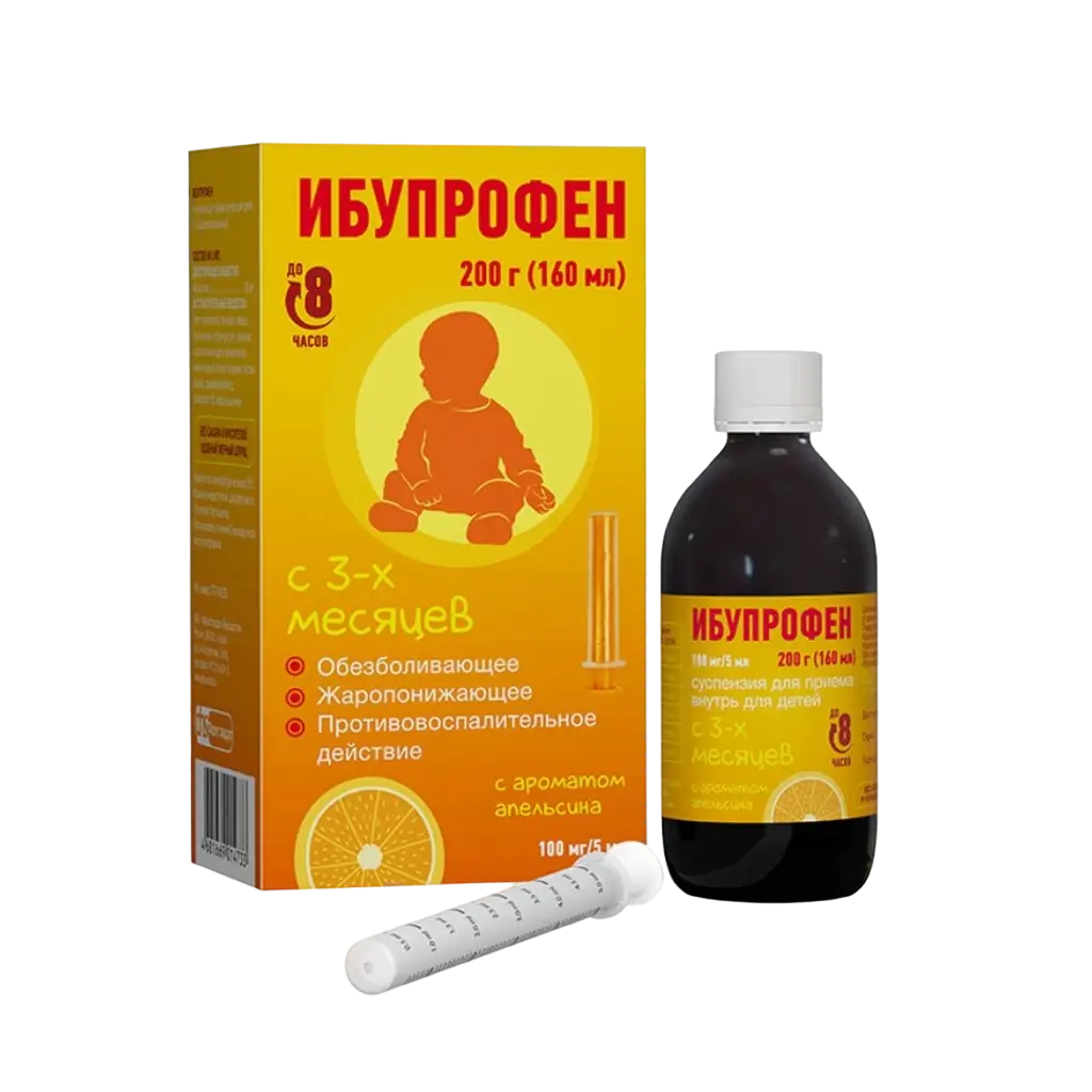 Ибупрофен суспензия для приема внутрь с ароматом апельсина 100 мг/5 мл флакон 160мл