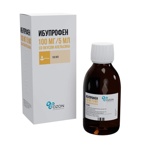 Ибупрофен суспензия для приёма внутрь для детей со вкусом апельсина 100мг/5мл флакон 150мл