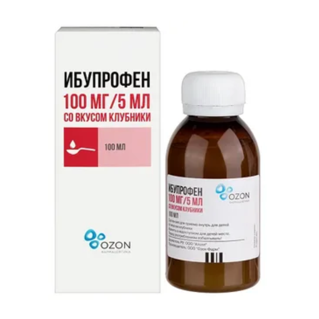 Ибупрофен суспензия для приёма внутрь для детей со вкусом клубники 100мг/5мл флакон 100мл