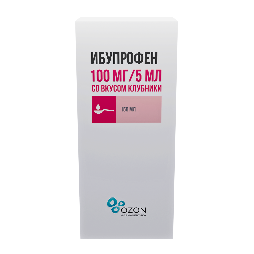Ибупрофен суспензия для приёма внутрь для детей со вкусом клубники 100мг/5мл флакон 150мл