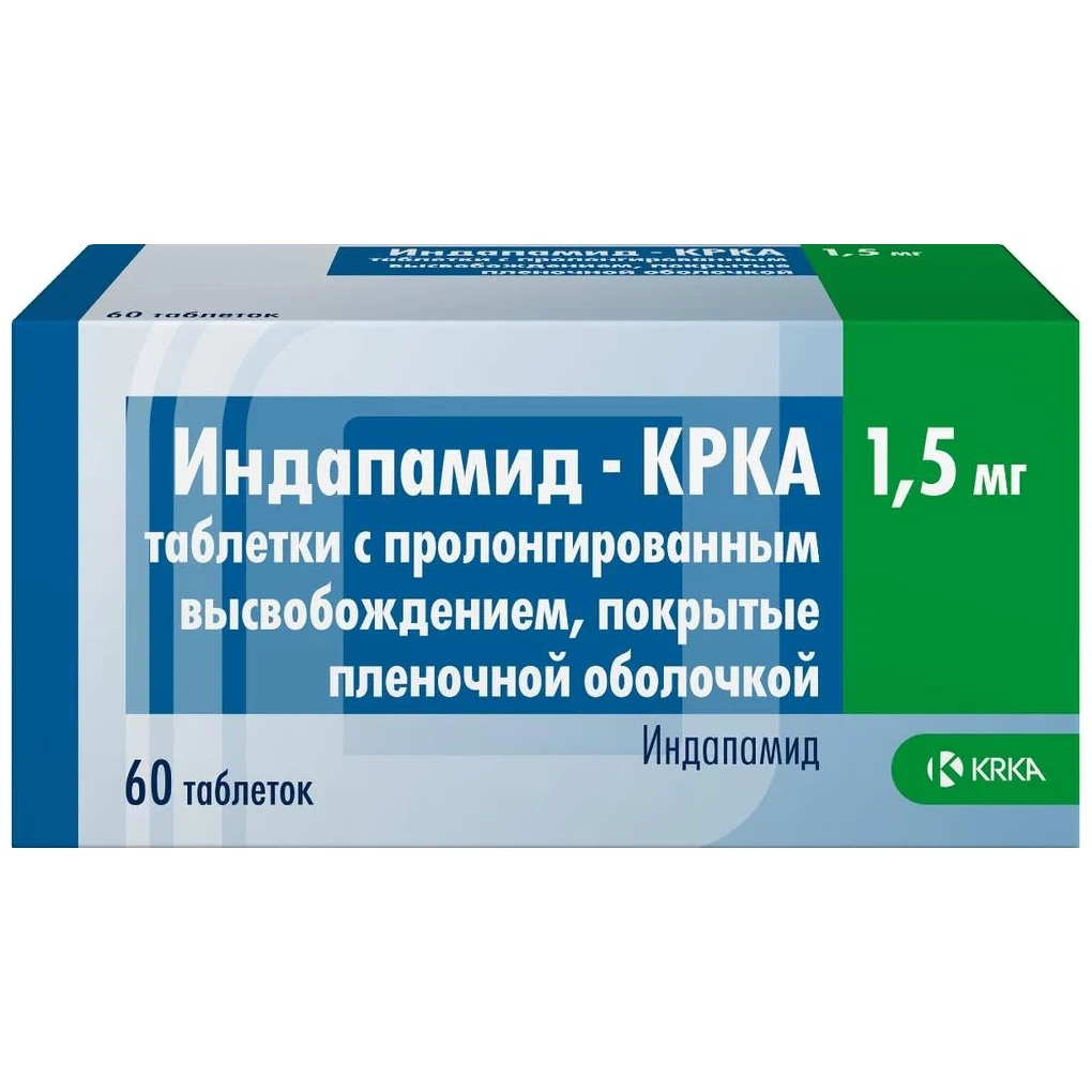 Индапамид-Крка таблетки с пролонгированным высвобождением покрытые плёночной оболочкой 1,5мг №60