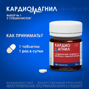 Кардиомагнил таблетки покрытые плёночной оболочкой 75мг+15,2мг №100