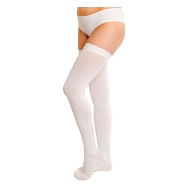 Антиэмболические чулки «ИНТЕКС» это современное и эффективное изделие разработанное по строгим медицинским требованиям для профилактики тромбозов и тромбоэмболии артерий, поэтому они выпускаются только белого цвета. Данный вид продукции подходит для пользования во время операций и родов, а так же для больных при длительном постельном режимом. Медицинские чулки 2 степени компрессии имеют отверстие в стопочной части для лучшей вентиляции кожи и наблюдения за состоянием кровообращения во время операций и выполнения гигиенических процедур во время постельного режима больного. В противотромбных чулках 2 компрессии «ИНТЕКС» укреплена носочная и пяточная часть для более долгого срока службы, а вязка выполнена по технологии бесшовной круглой вязки.