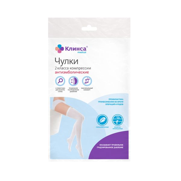 Клинса чулки II класс компрессии антиэмболические женские размер L белые