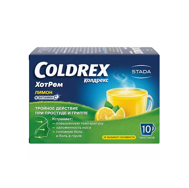 Колдрекс ХотРем порошок для приготовления раствора для приема внутрь лимонный пакетики 5г №10