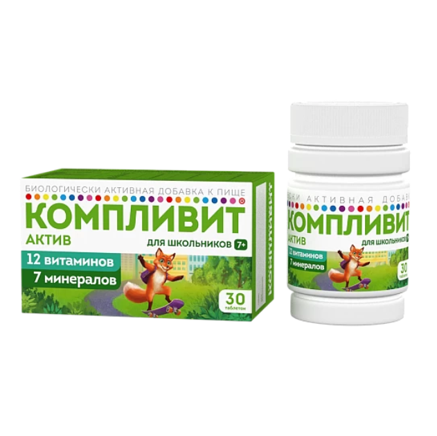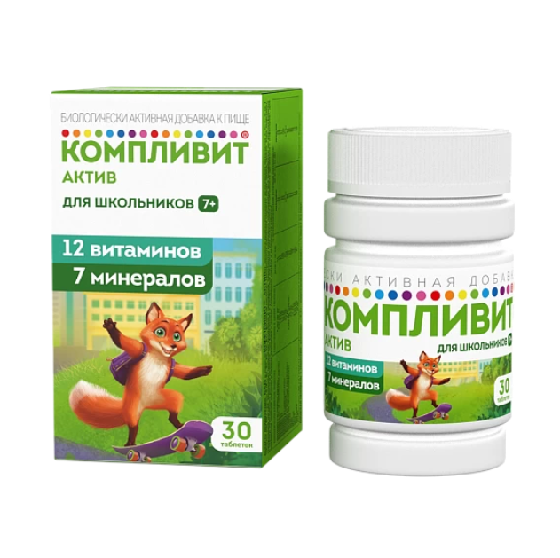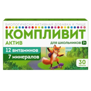 Компливит Актив для школьников 7+ таблетки покрытые пленочной оболочкой массой 693мг №30