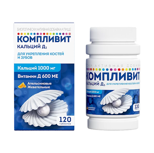 Биологически активная добавка «Компливит® Кальций Д3» является дополнительным источником к пище кальция и витамина Д3 (300 МЕ в 1 таблетке).