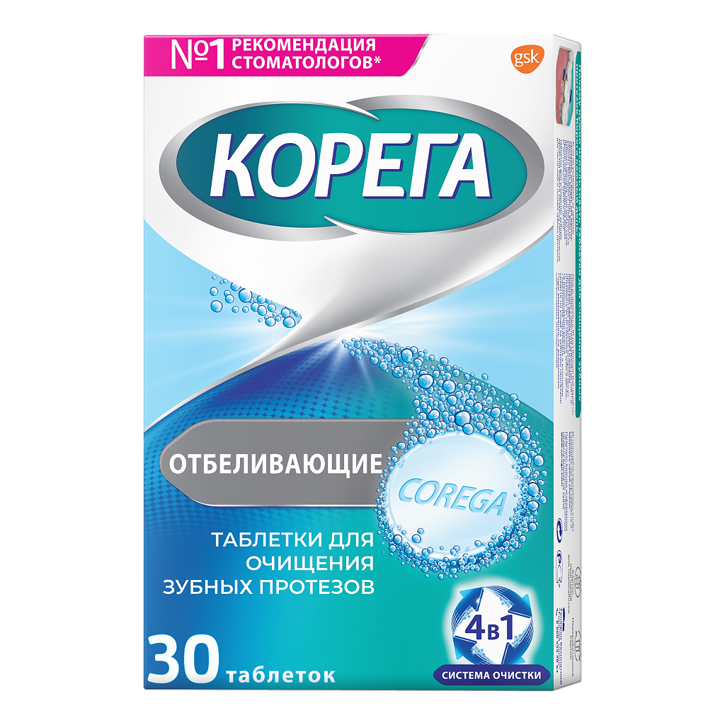 Корега Отбеливающие таблетки для очищения зубных протезов №30