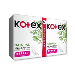 Первые дни менструаций часто сопровождаются обильными выделениями. С гигиеническими прокладками Kotex® Natural СУПЕР каждая девушка может быть уверенной в своей защите. Они гибкие и в точности повторяют контуры тела, плотно прилегая к коже, а удлинённая форма обеспечивает дополнительную надёжность. Новая улучшенная задняя поверхность прокладок позволяет коже дышать. Здоровье девушек — приоритет для нас. Эту серию прокладок мы сделали гипоаллергенной и включили в изделия натуральный компонент — хлопок. Исследования, проведённые дерматологами, подтвердили безопасное использование прокладок. В упаковке — 14 штук.