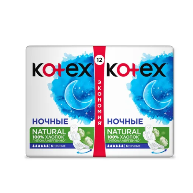 Котекс Natural прокладки ночные №12