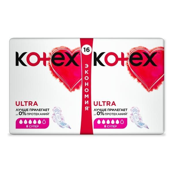 Женские гигиенические прокладки Kotex Ultra СУПЕР НОВЫЕ Kotex Ultra СУПЕР с удлиненным задним краем для обильных выделений. Улучшенная защита и новый стильный дизайн. Обеспечивают комфорт и уверенность до 100%* Прокладка стала более гибкой, чтобы лучше подстраиваться под анатомию твоего тела и защищать от протеканий. ЛУЧШЕ ПРИЛЕГАЕТ до 0% ПРОТЕКАНИЙ* Выбирай упаковку с сердечком! Уникальный 3D центр -быстро впитывает Эластичные желобки - придают прокладке гибкость для защиты от протеканий сзади Подстраивающийся внутренний слой - адаптируется под анатомию твоего тела Покрытие мягкая сеточка для максимального комфорта и сухости кожи Мягкие крылышки, надежно крепятся к белью и не натирают кожу Эстетичная форма прокладки и нежный женственный дизайн добавят удовольствия при использовании Обновленный дизайн упаковки - стильный и современный Выбирай упаковку с сердечком! *Опрос потребителей. Россия. 2019. По сравнению с предыдущей линейкой Котекс Ультра Нормал.