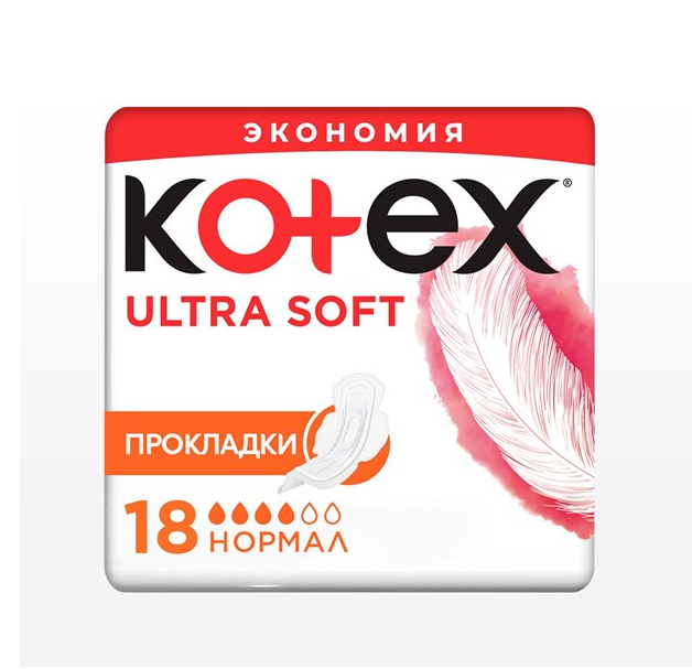 ОБНОВЛЕННЫЕ женские гигиенические прокладки Kotex Ultra Soft НОРМАЛ для умеренных выделений. Обеспечивают комфорт и уверенность до 100%. Улучшенная защита и новый дизайн. Экстра мягкий верхний слой и уникальный впитывающий 3D центр обеспечивают мягкую и комфортную защиту Эластичные желобки – придают прокладке гибкость для защиты от протеканий сзади Мягкие крылышки, надежно крепятся к белью и не натирают кожу Эстетичная форма прокладки и нежный женственный дизайн добавят удовольствия при использовании Обновленный дизайн упаковки – стильный и современный Выбирай упаковку с мягким перышком!