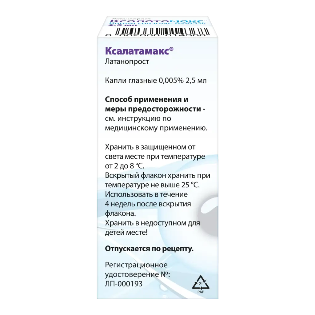 Ксалатамакс капли глазные 0,005% флакон 2,5мл