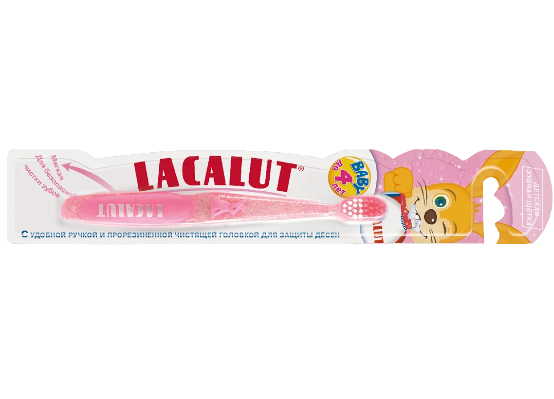 Детская зубная щётка Lacalut baby разработана специально для детей с рождения до 4-х лет. Мягкая нейлоновая щетина ровно подстрижена и тщательно удаляет налет с детской эмали. Безопасная прорезиненная головка зубной щетки предохраняет малыша от травм во время самостоятельной чистки и имеет цветное поле для дозирования пасты. Удобная эргономичная ручка изготовлена из нескользящего материала.