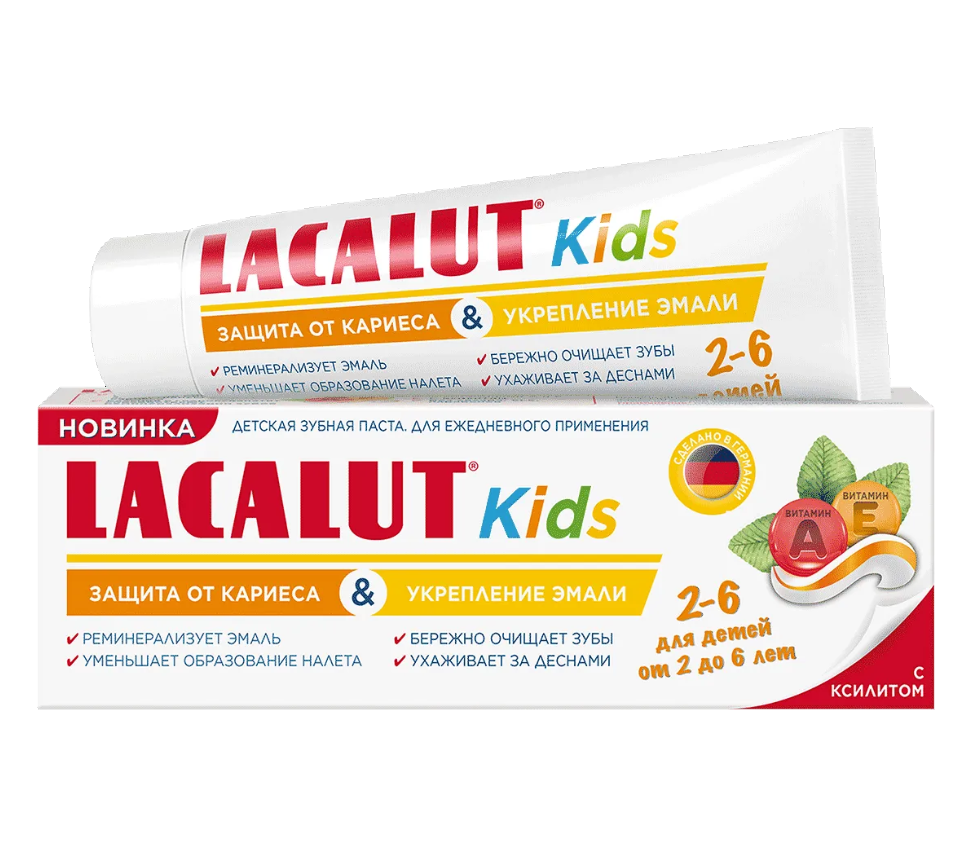Лакалют кидс 2-6 детская зубная паста защита от кариеса и укрепление эмали туба 65г