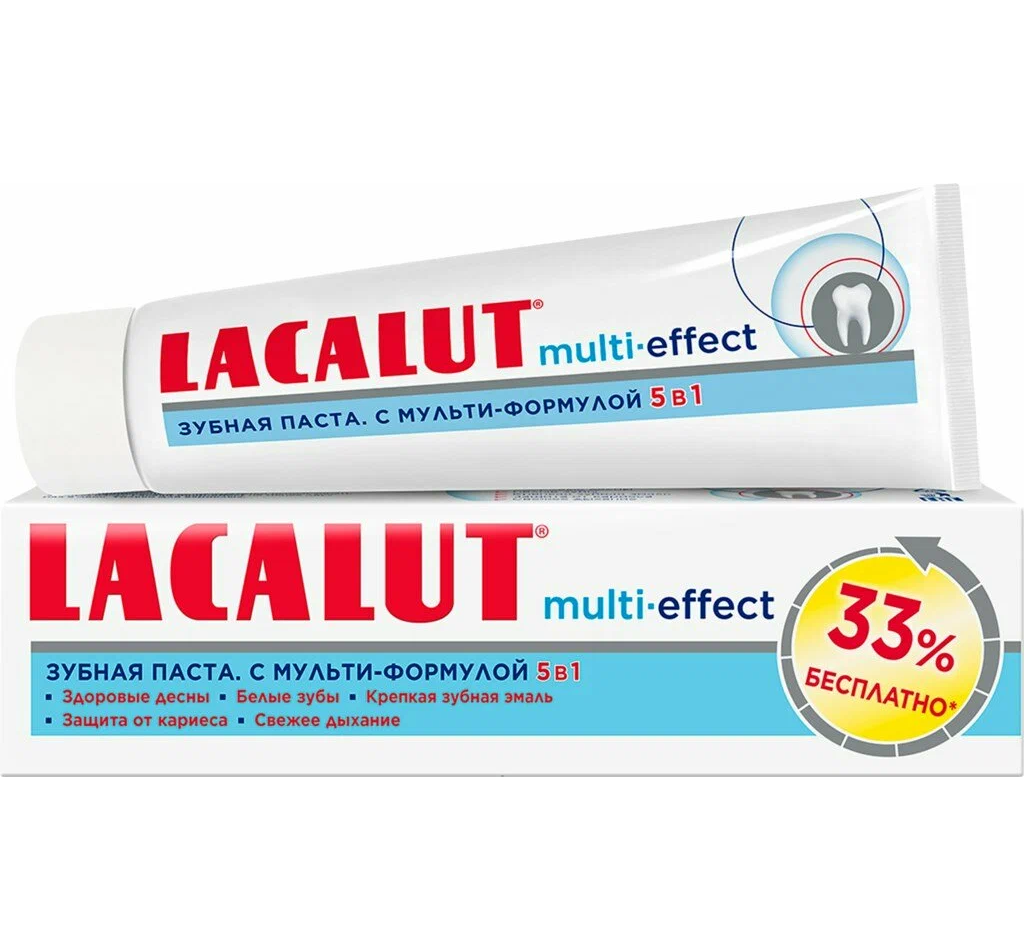 Благодаря новейшей мульти-формуле 5 в 1 зубная паста LACALUT multi-effect станет незаменимой для всей семьи. В состав пасты LACALUT multi-effect входят следующие компоненты: