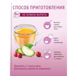 Две столовые ложки (20 г) киселя залить 150-180 мл кипящей воды, перемешать, дать настояться 1-2 минуты. Принимать 1-2 раза в день.