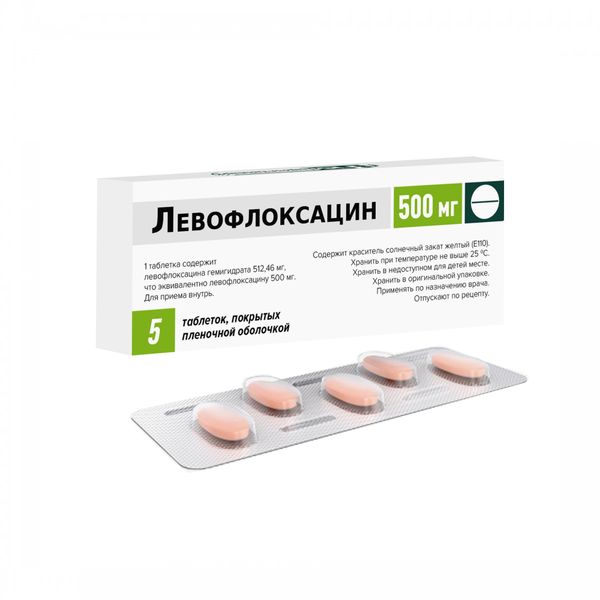 Левофлоксацин таблетки покрытые плёночной оболочкой 500мг №5