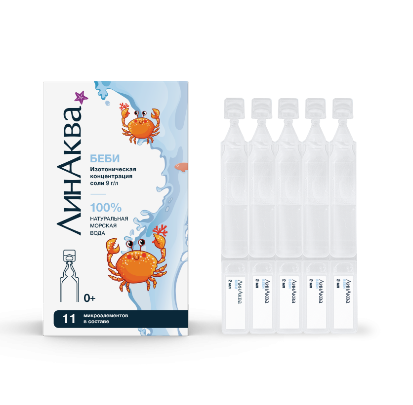 ЛинАква беби, юнидозы (тюбик-капельницы). Средство для промывания и орошения полости носа.