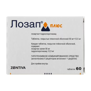 Лозап плюс таблетки покрытые плёночной оболочкой 50мг+12,5мг №60
