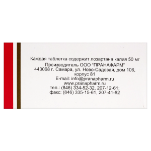 | Лозартан калия | 12,5 мг | 25 мг | 50 мг | 100 мг |