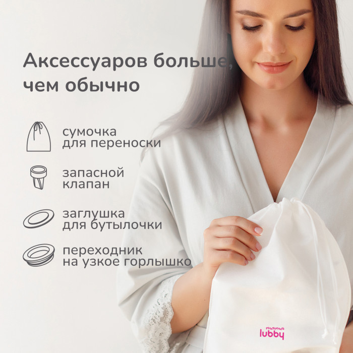 Молокоотсос mama lubby даст тебе уверенность в том, что малыш всегда будет сыт и доволен. Благодаря возможности выбора одного из трёх режимов сцеживания, процесс будет легким и комфортным, а сумка в комплекте позволит быть мобильной и всегда знать, где лежат все детали молокоотсоса.