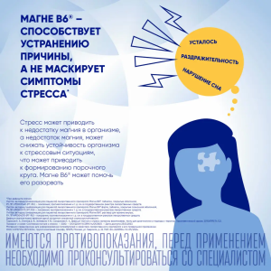 Пиридоксин (витамин B6) участвует во многих метаболических процессах, способствует улучшению всасывания магния из желудочно-кишечного тракта и его проникновению в клетки.
