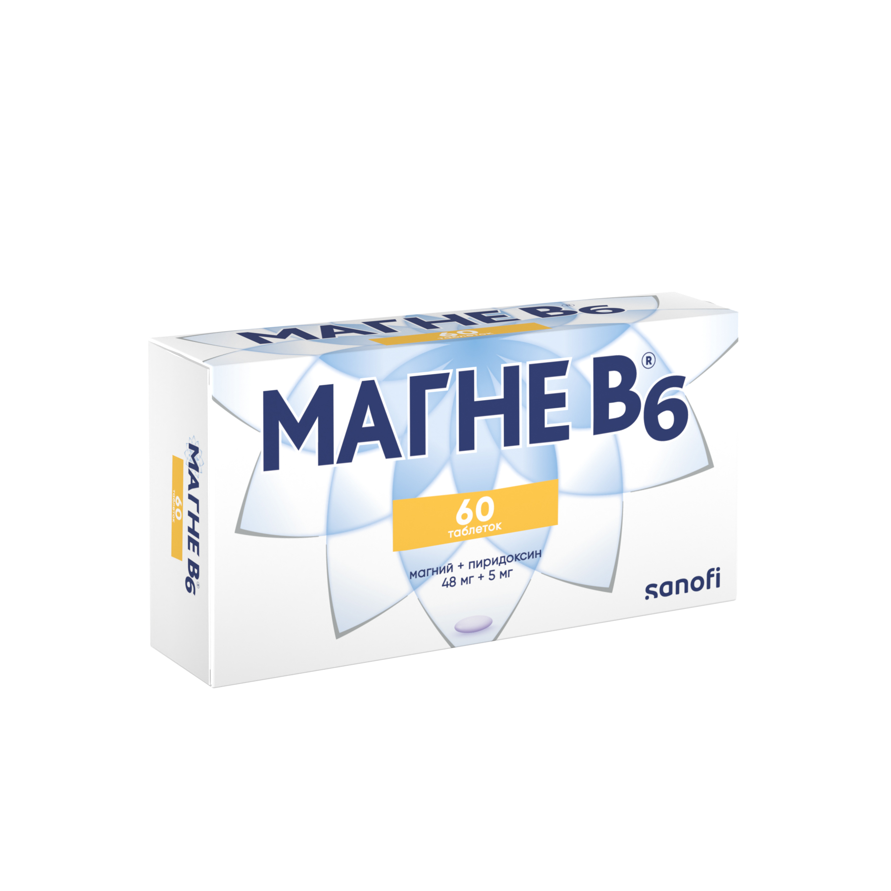 Магне В6 таблетки покрытые плёночной оболочкой 48мг+5мг №60