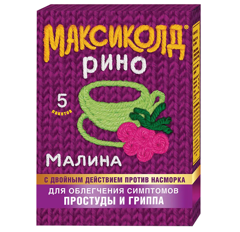 Максиколд Рино порошок для приготовления раствора для приема внутрь с ароматом малины 325мг+10мг+20мг+50мг пакетики 15г №5