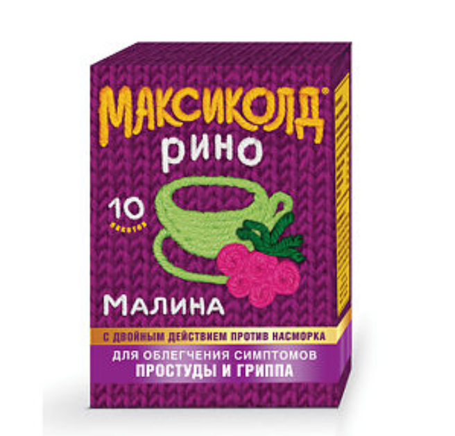 Максиколд Рино порошок для приготовления раствора для приема внутрь малиновый пакеты 15г №10