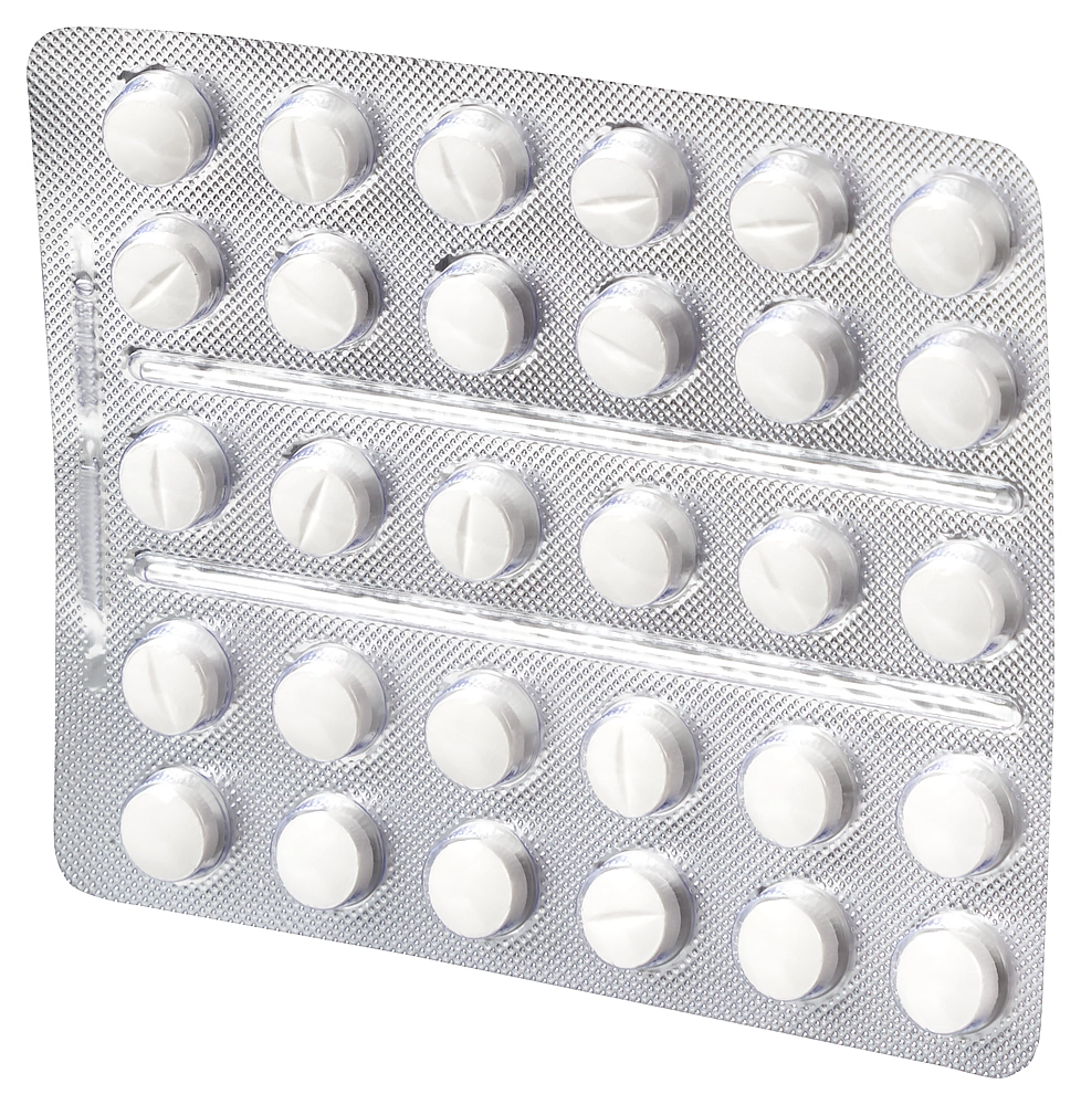 Круглые двояковыпуклые таблетки, покрытые плёночной оболочкой белого или почти белого цвета, с риской с одной стороны. На поперечном разрезе таблетки видны два слоя: ядро белого или белого с желтоватым оттенком цвета и плёночная оболочка.