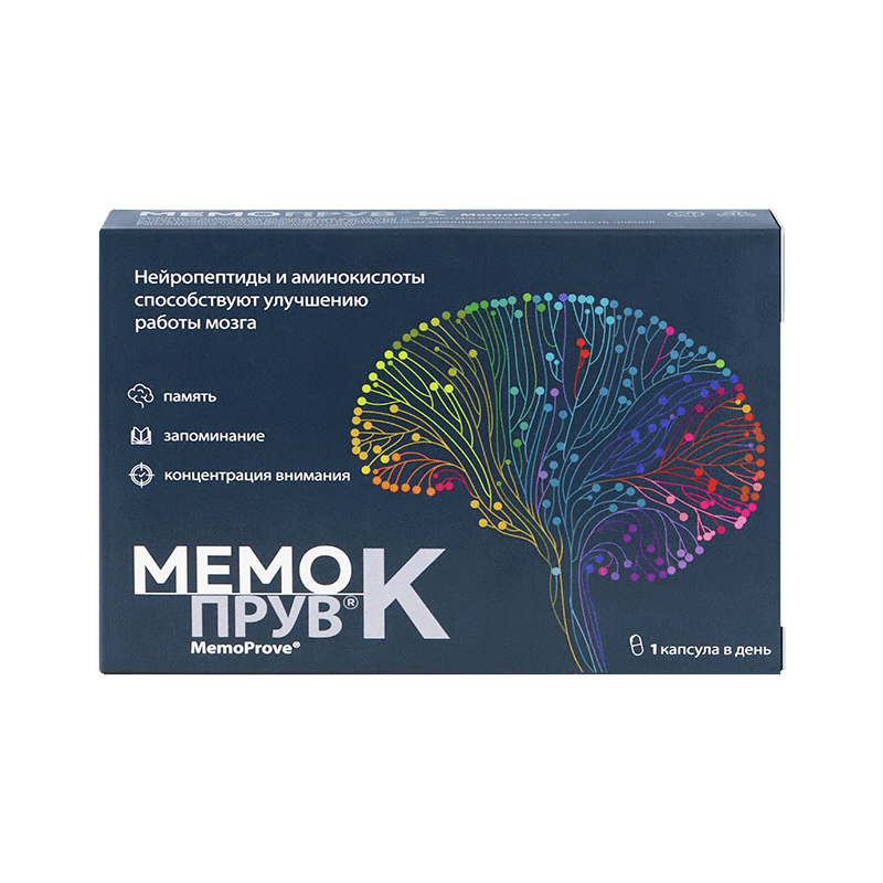МЕМОПРУВ® - биологически активная добавка к пище с доказанной клинической эффективностью при возникновении легких и умеренных проблем с памятью. В состав МЕМОПРУВ® входит запатентованная смесь пептидов N-PEP-12™, способствующая поддержанию оптимального уровня когнитивных функций. Клинически доказано, что МЕМОПРУВ® способствует улучшению памяти уже к 30 дню применения. ;